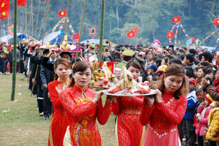 Dâng lễ vật lên các vị thần. nguồn: baobackan