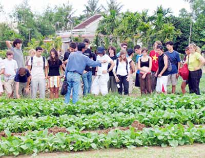 Khách nước ngoài tham quan làng rau Trà Quế. Ảnh: Internet