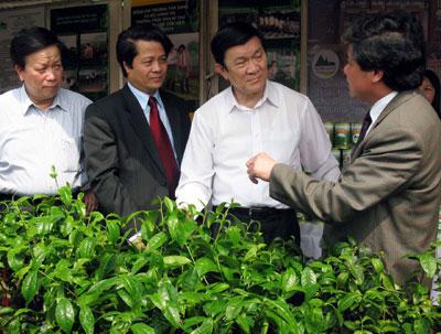 11/04/2011 2:50 CH Đồng chí Trương Tấn Sang và lãnh đạo tỉnh Phú Thọ tham quan các gian hàng trưng bày, giới thiệu sản phẩm chè.