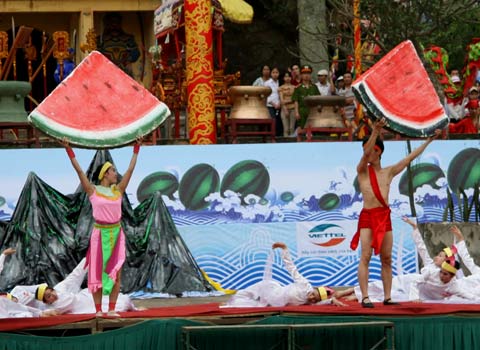 21/04/2013 10:14 SA Hoạt cảnh tái hiện lại sự tích quả dưa hấu được dàn dựng công phu. Ảnh Internet