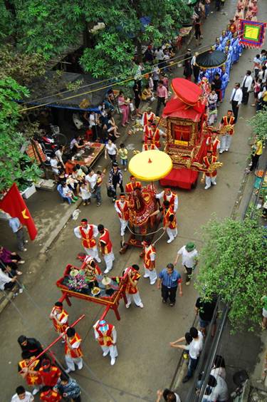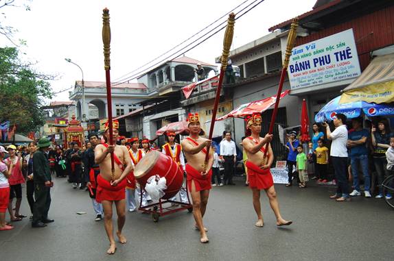 Đoàn rước đi qua đường làng Đình Bảng về Đền Đô