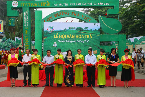 Các đồng chí lãnh đạo tỉnh Thái nguyên và du khách đã đi thăm quan Con đường Trà Việt được tái hiện bởi những cô gái gánh trà búp khô, hoa tươi bán rong; các gian hàng trưng bày và giới thiệu sản phẩm trà, xem các hoạt động văn hóa nghệ thuật dân gian…