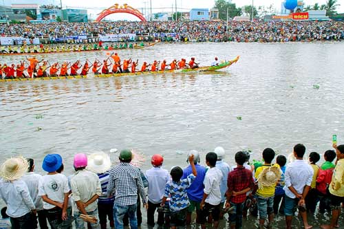 Hàng chục ngàn người dân ở khắp nơi đã đổ về hai bên bờ sông Máspero, để theo dõi, reo hò cổ vũ cho Giải đua ghe ngo truyền thống lễ hội Oóc-om-bóc của đồng bào Khmer Nam bộ.