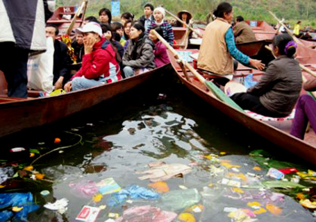 18/02/2014 3:10 CH Vứt rác bừa bãi tại suối Yến, lễ hội chùa Hương. Nguồn:dantri